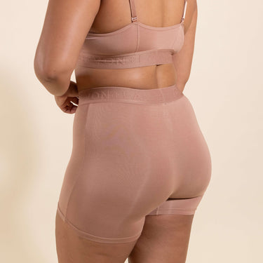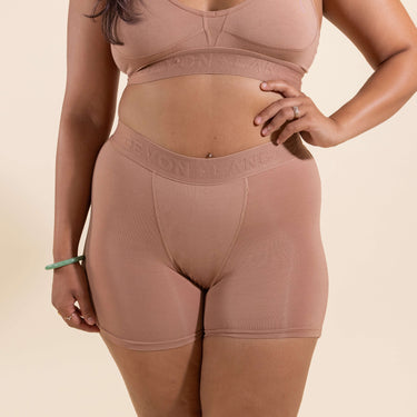 The Devon + Lang Bria Boxer Brief is a high waist women's underwear made from modal, perfect for lounging or active use. With a 5" inseam, it provides ample coverage and support. This ultra-soft boxer brief is designed to be incredibly comfortable, allowing you to wear it all day long. Its sleek and minimalist design looks great on all body types, making it a must-have addition to your underwear collection. Choose the Devon + Lang Bria Boxer Brief for ultimate comfort and style. This Bria Boxer is crafted without mesh panels.