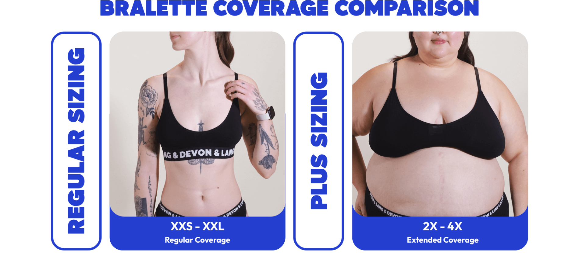*Sizes L-XXL provide higher cup coverage. Sizes 3XL-4XL have a higher cut cups and front for support. Due to the nature of Bralettes, you may fit a few different sizes. If you’re unsure of your size, we suggest going with your underbust size. Support and coverage can vary from person to person, contact us for assistance if you’re unsure!