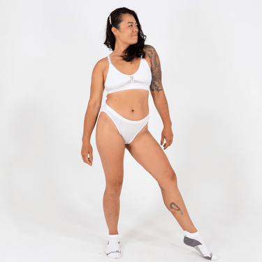 The Katrina French Bikini from Devon + Lang is a French twist on the classic bikini brief, designed with a comfort-first approach. This high-waisted bikini is constructed from the softest modal, promising support and comfort without compromising on style. The 3/4" super-soft waistband holds you just right, staying in place as you move throughout your day. The French cut adds a touch of elegance to your base layer. Perfect for everyday wear, you'll feel confident and sophisticated in the Katrina French Bikini from Devon + Lang.